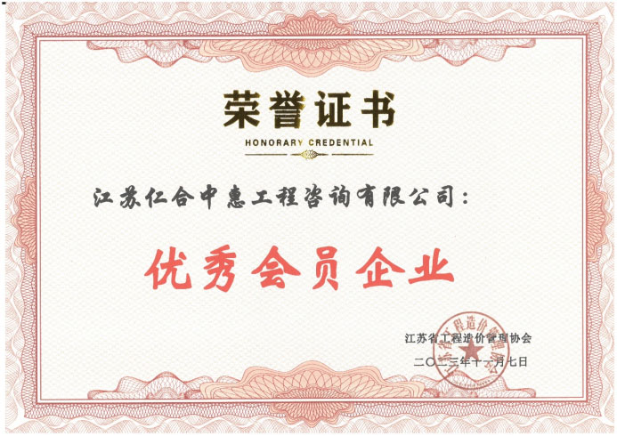 • 祝賀江蘇仁合中惠榮獲江蘇省工程造價管理協會優秀會員企業! 11-28